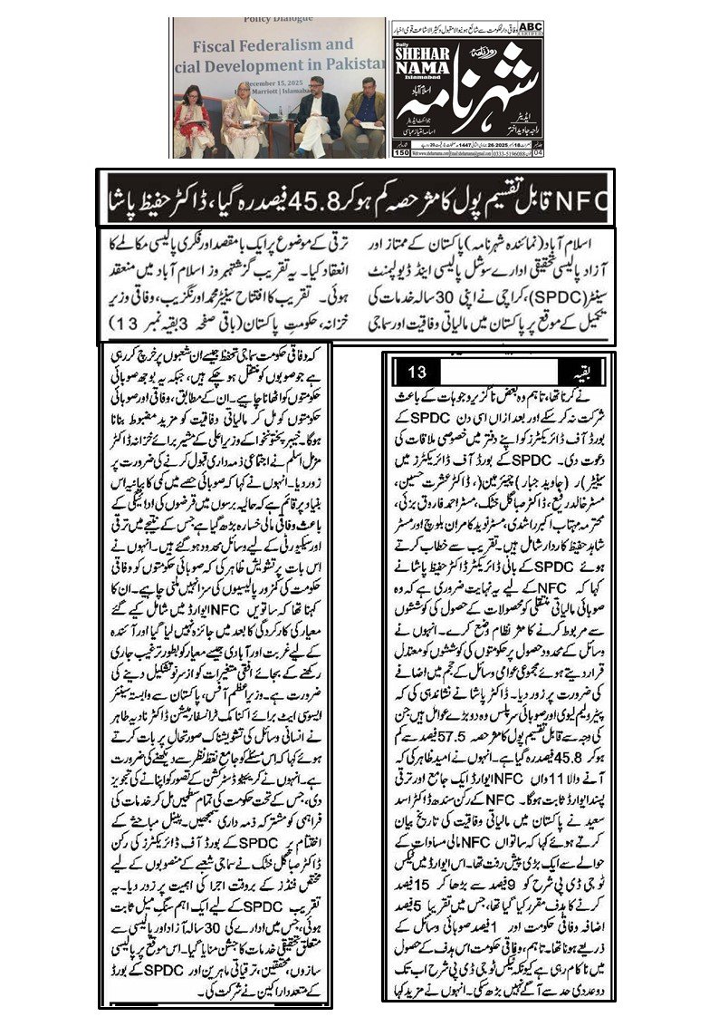 این ایف سی قابل تقسیم پول کا مثر حصہ کم ہوکر 45.8 فیصد رہ گیا، ڈاکٹر حفیظ پاشا
