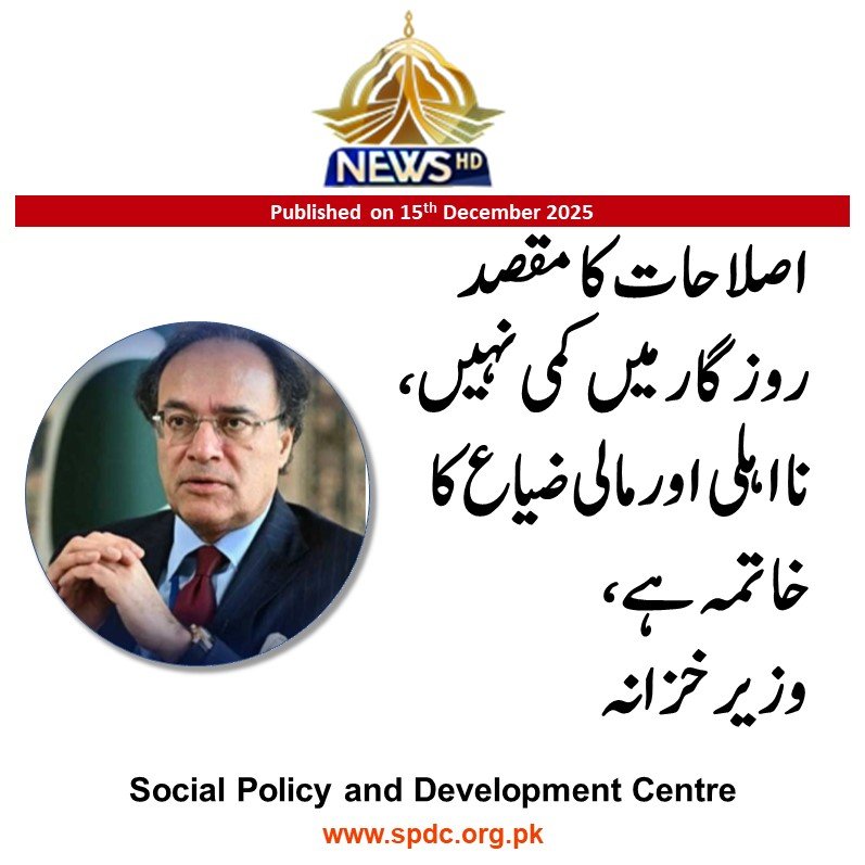 انہوں نے کہا کہ این ایف سی کے مختلف پہلوؤں پر تکنیکی گفتگو کے لیے آٹھ ورکنگ گروپس قائم کیے جا چکے ہیں، جو مکمل اتفاقِ رائے کی بنیاد پر کام کریں گے۔ اس موقع پر انہوں نے ایس پی ڈی سی کو تجزیاتی معاونت اور پالیسی تجاویز فراہم کرنے کی دعوت بھی دی۔ملاقات میں ماحولیاتی تبدیلی اور آبادی میں تیزی سے اضافے جیسے طویل المدتی چیلنجز پر بھی تبادلۂ خیال ہوا۔