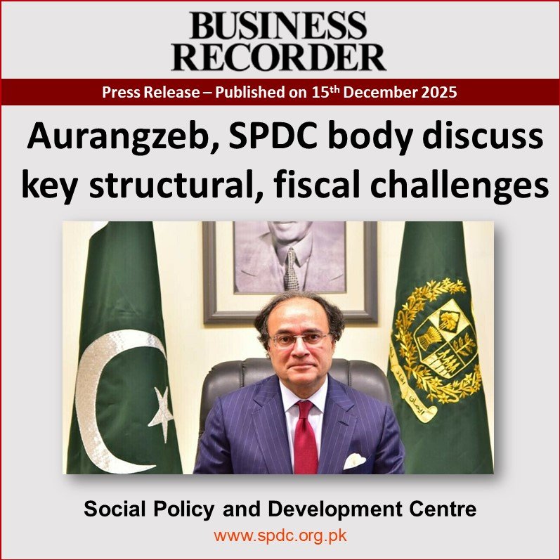 ISLAMABAD: Federal Minister for Finance and Revenue, Senator Muhammad Aurangzeb, on Monday held a detailed and wide-ranging meeting with a delegation of the Social Policy and Development Centre (SPDC), led by its Chairman, Javed Jabbar.
